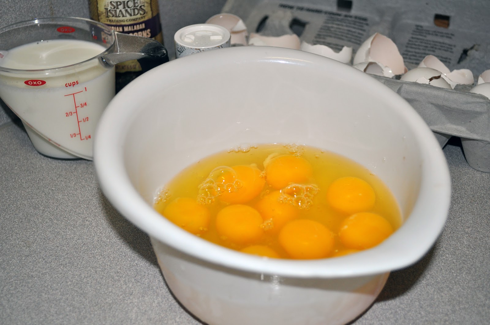 Crack 12 eggs in a large bowl.